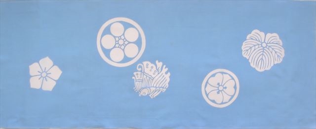 歌舞伎役者各家の紋がちりばめられています。紺もあります。